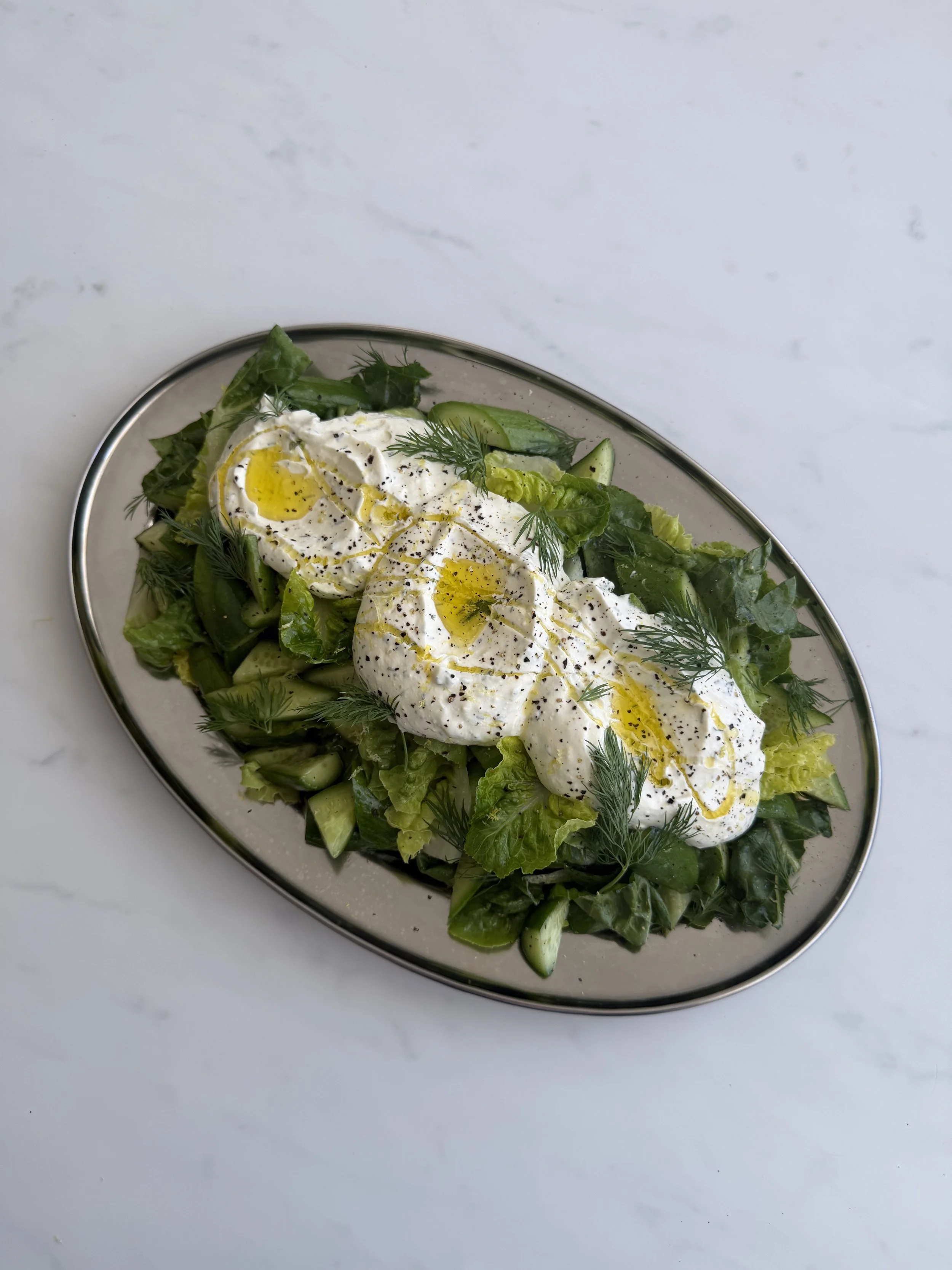 cos and mini cucumber with creamy dill dressing